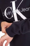 Regular women's sweatshirt, in pure black cotton fleece, with ribbed neckline and Calvin Klein Jeans logo printed on the front.
