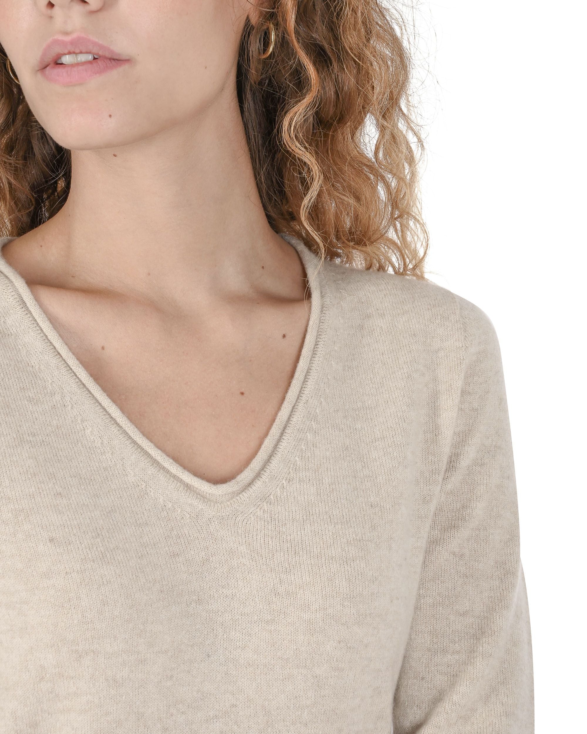 Crown of Edinburgh Cashmere Womens V Neck Sweater COE 0022 BEIGE